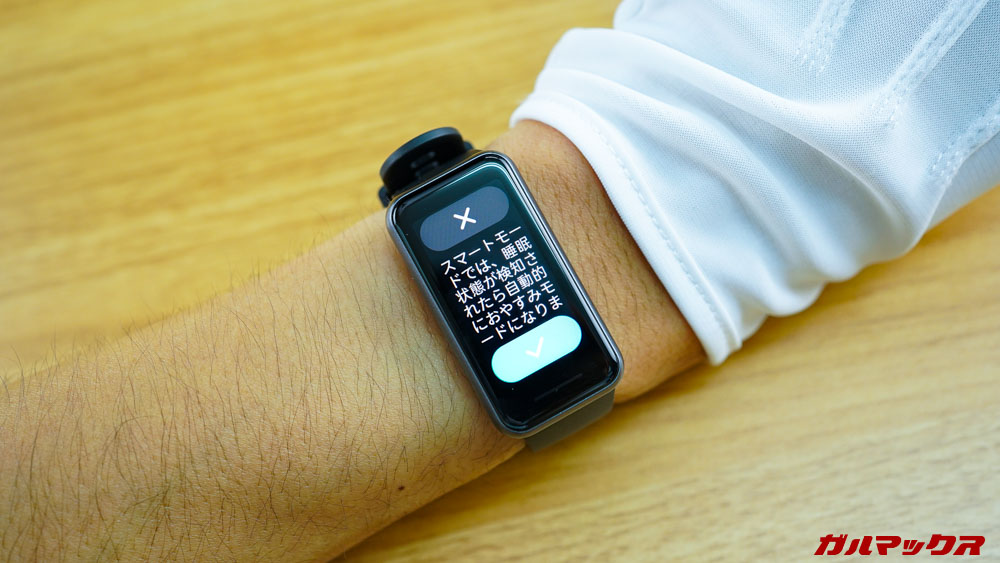 ▼もう1つ良かったのが、おやすみモードっつって通知を鳴らさないモードを時刻で設定できるほかに、睡眠を検知したら自動でおやすみモードに移行してくれるスマートモードに対応しているんですよ。↓