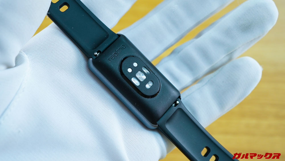 ▼バンドの素材がサラサラして水分を拭き取りやすいもので、つけ心地は良好!就寝中もムカつく感じがないです。またバンドを留める部分はかなりしっかりしており、穴に通すとガッチリ固定してくれる仕組みになってました!なかなか外れん。そして外せん。↓