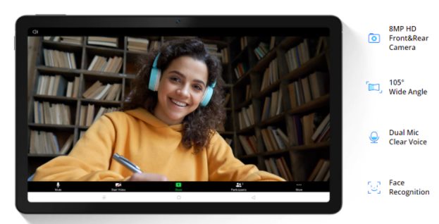 ▼背面カメラは1,300万画素、インカメラは800万画素となっています。画角は非公表ですが画素数的にはオンライン授業などで使うぶんには十分かと思われます!↓
