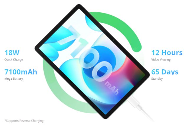 ▼バッテリーも7,100mAhと大きく1日しっかり持ってくれます。動画視聴の場合は12時間ほど持ちます。さらに18Wの急速充電もGoodで、大容量バッテリーながら充電の遅さも感じさせません。↓