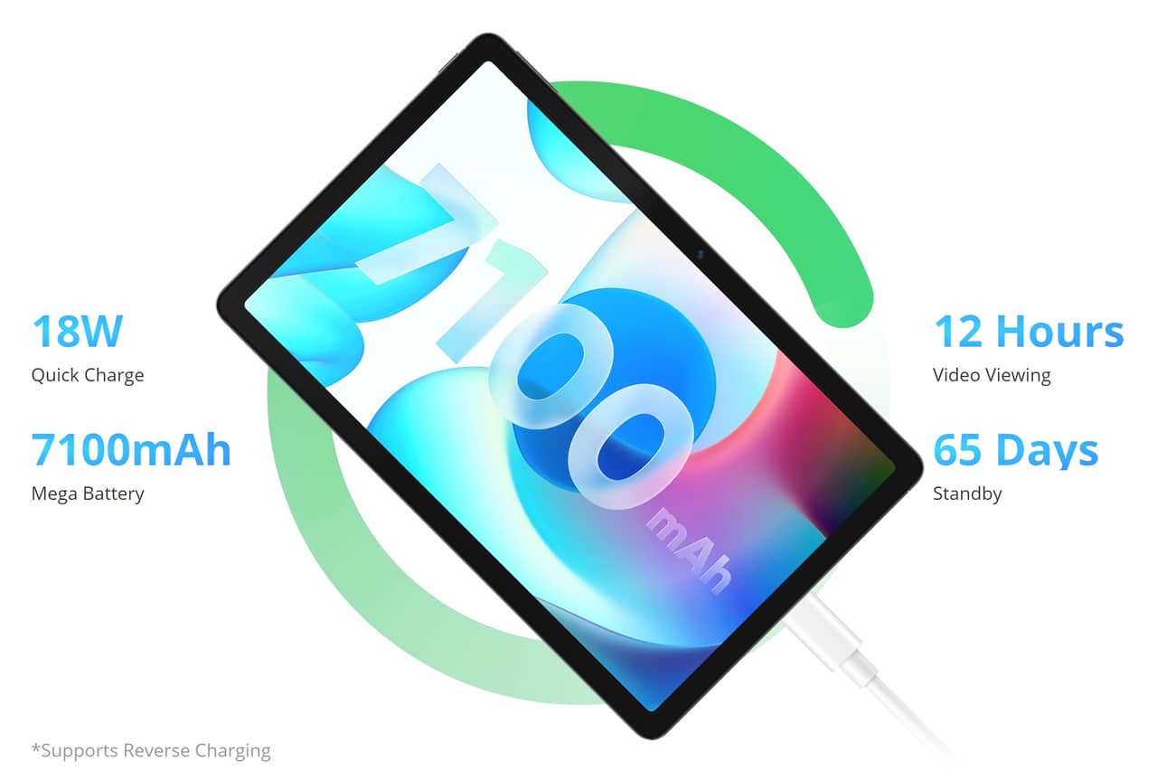▼バッテリー容量は7,100mAh、急速充電は最大18Wに対応!ミドルレンジながら急速充電にバッチリ対応は嬉しいポイント。実際使っても充電・電池持ちどっちも満足レベル!↓