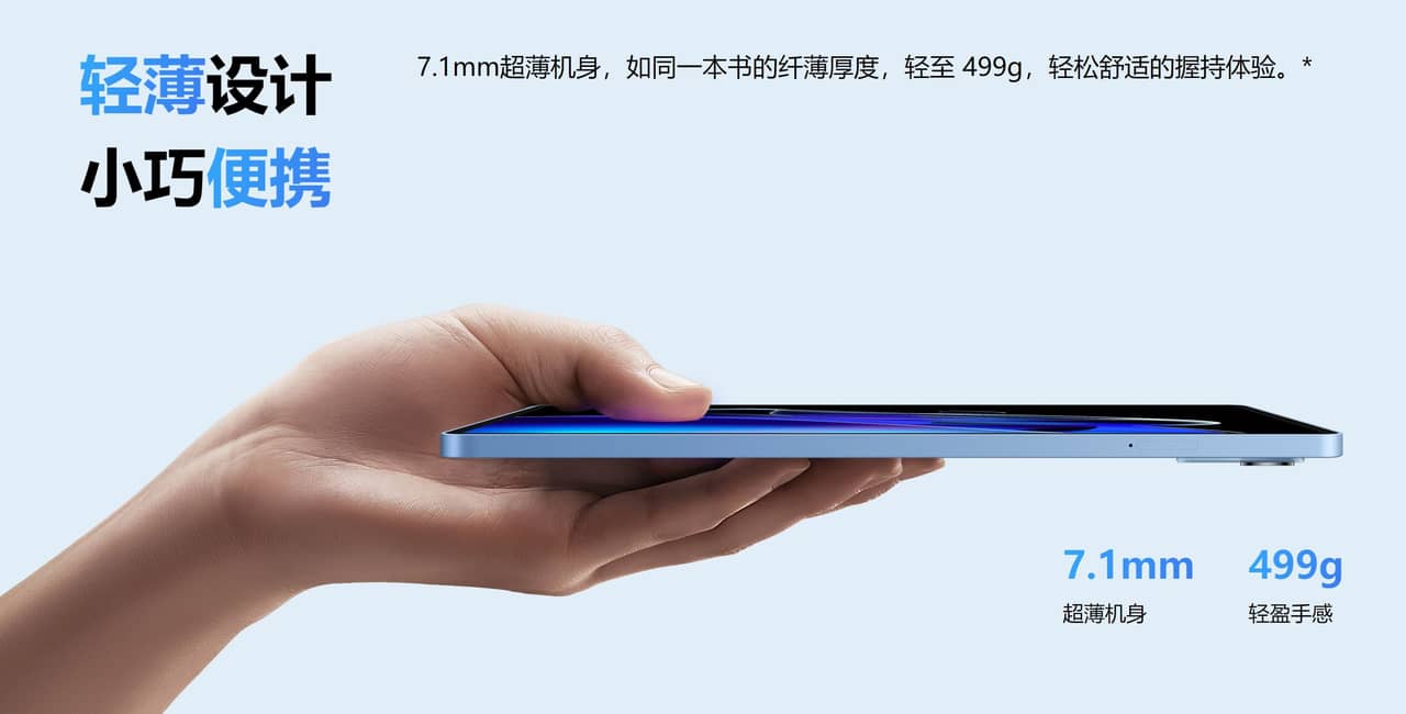 ▼タブレットながらスリムかつ軽量で、厚みは7.1mm、重さは499gとなっています!大画面なんだけどなかなか持ち運びもしやすそうでイイカンジだ!↓