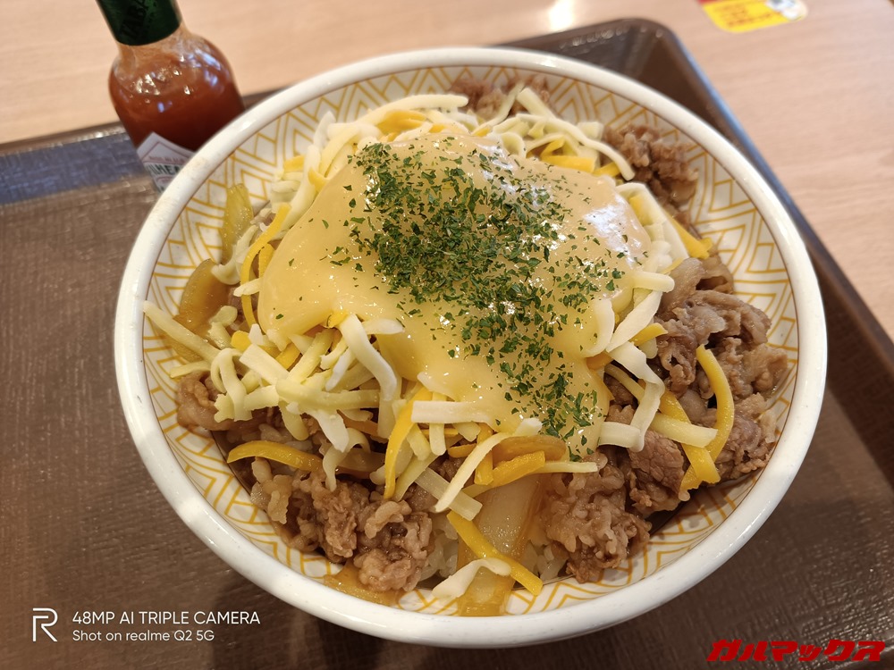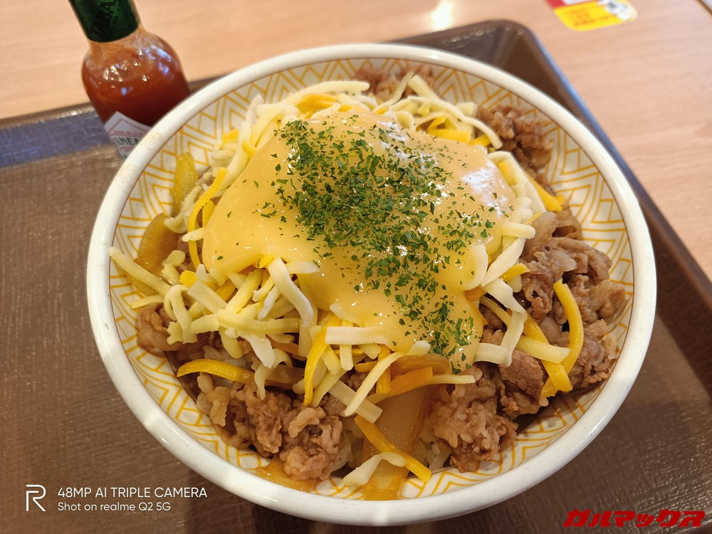 ▼AIオンでもワザとらしさがなく、三色チーズ牛丼がメチャクチャ美味しそうに見えます。特盛にして温玉を付けたくなりますね。左がAIオフ、右がAIオンです。↓