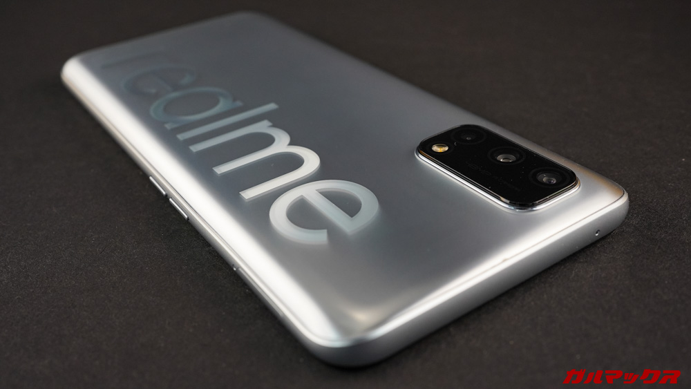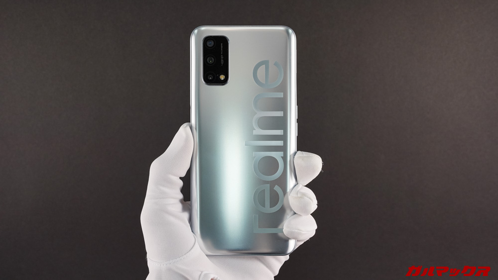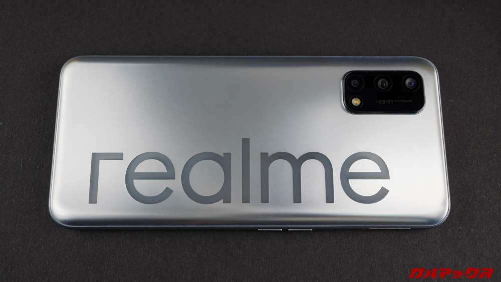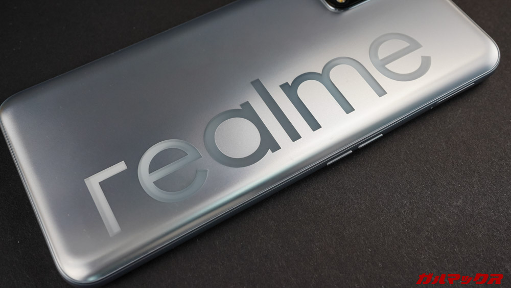 ▼背面デザインはRealmeのデカいロゴが入った個性的なデザイン!カラーはシルバーとなります。↓
