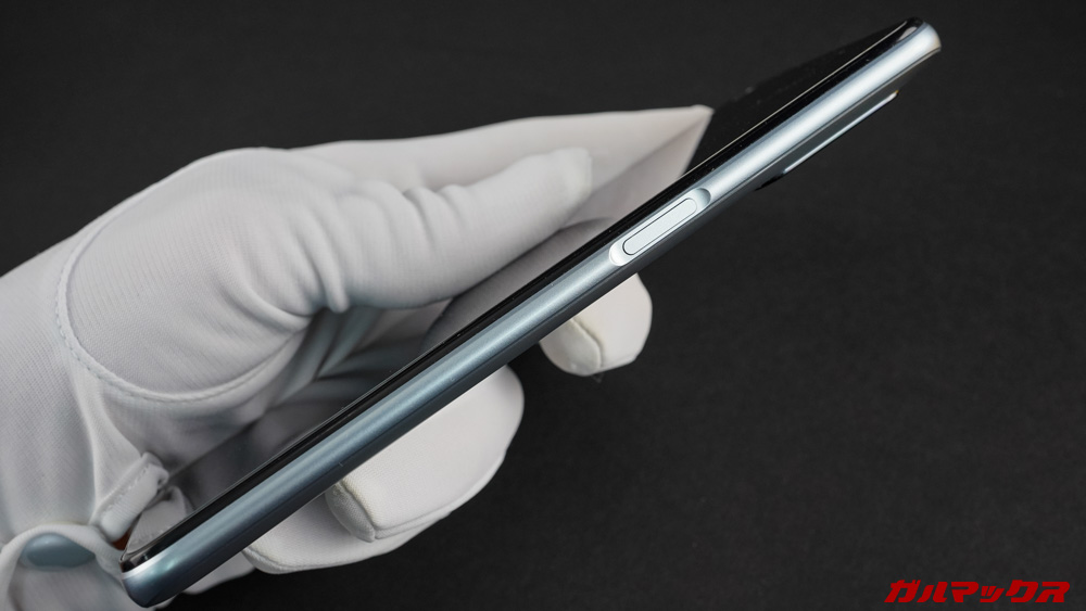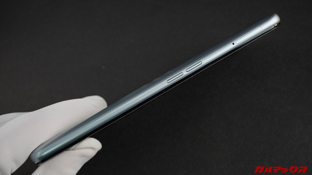 ▼側面部分には左側に音量キー、右側に指紋センサー兼電源キーという配置!スクショ(電源+音量キー下)がやりやすい意味で扱いやすく好み!↓