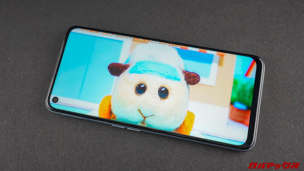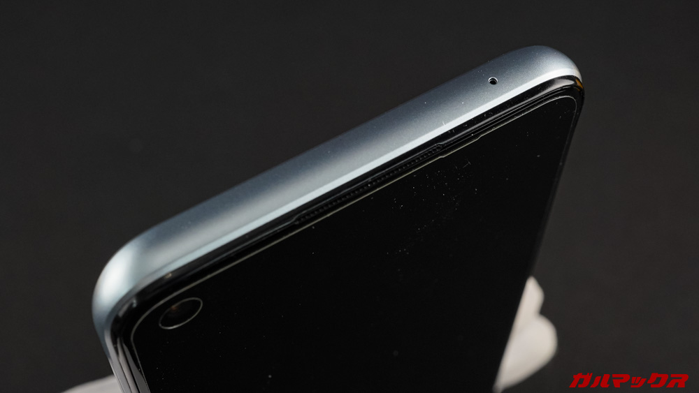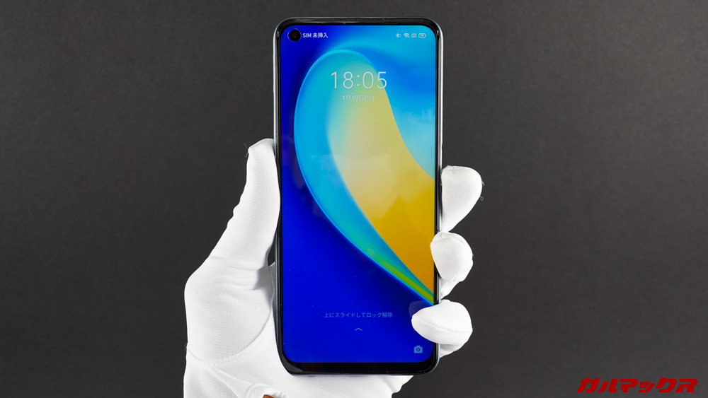 形状自体は左上パンチホールタイプ。最近出ているモデルでよく見かけられる形状ですが、パンチホールの大きさ、ベゼルの太さは標準的で、安っぽさは感じないです。トレンディでGood!