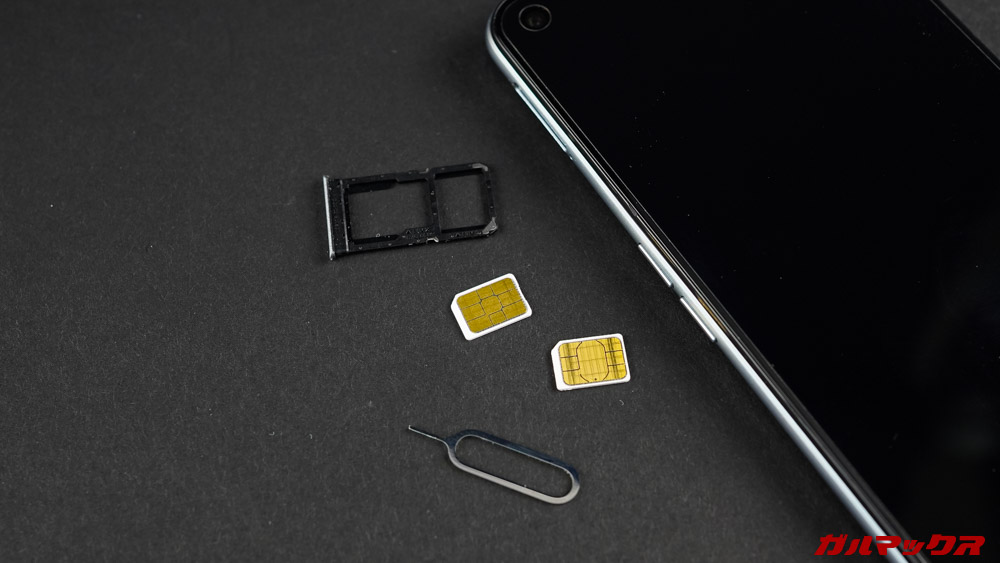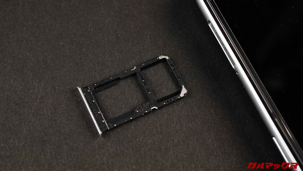 ▼SIMスロットはデュアルスロット式。Nano SIMを2枚挿せる設計でした。片方にはMicroSDカードが入る仕組み!↓