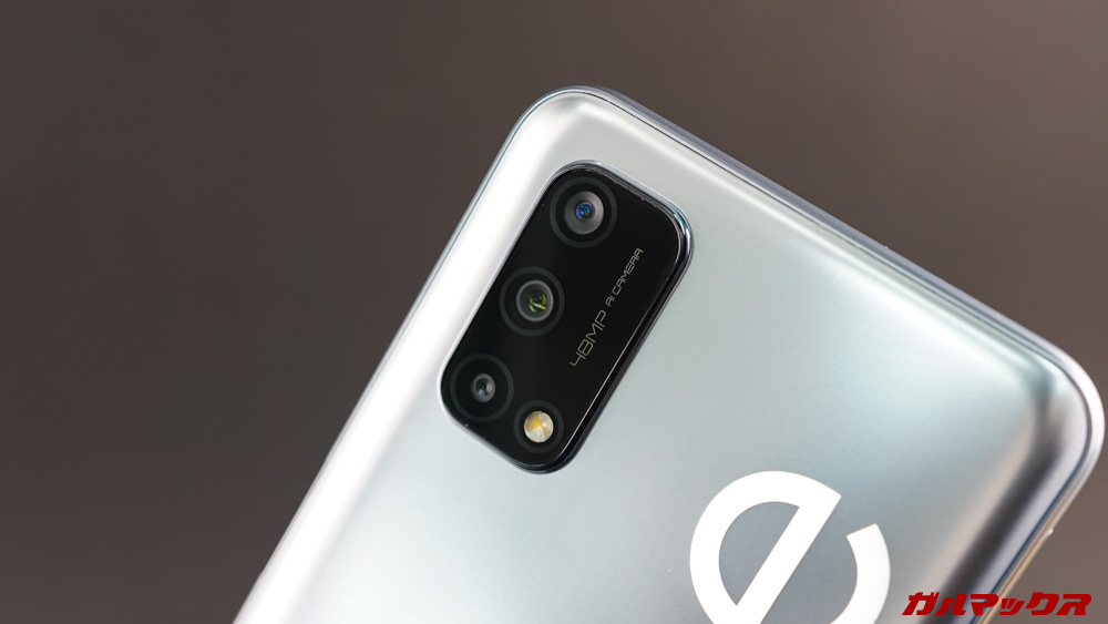 ▼デカいRealmeロゴは好みが分かれるかもしれんですが、個人的に気になりません。あと光を当てるとロゴにちょっと影が出てくるんで、立体感を感じられる意味で好みな外観。↓