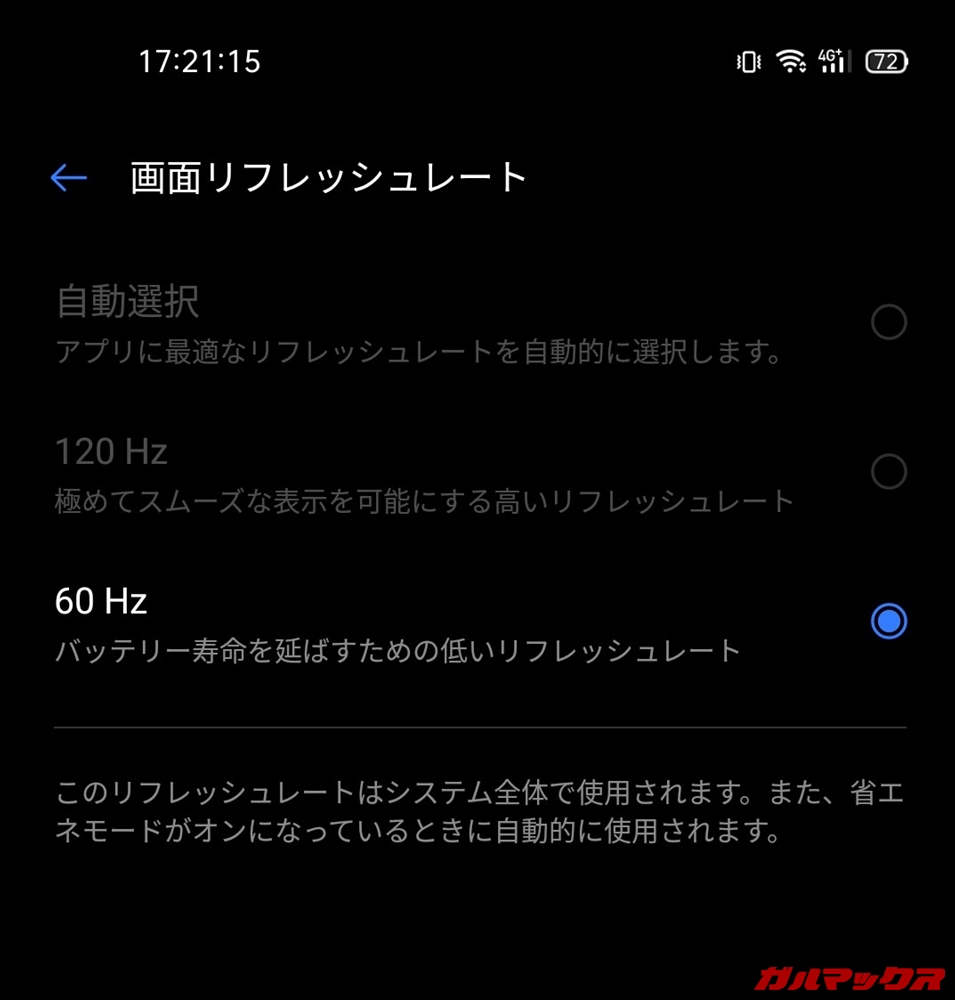▼ただこれ、リフレッシュレートが強制的に60Hzに戻されてしまい、120Hzが選べなくなってしまうときがときたまにあります。↓