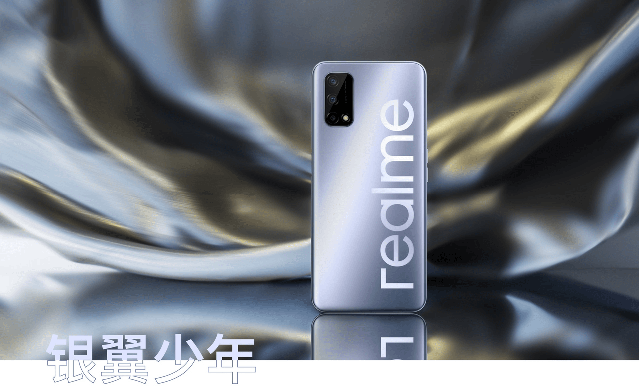 ▼Realme Q2 5Gの外観は美しい色合いと光沢具合、そしてデカデカと入ったRealmeロゴが目を引く超個性的外観。カラーはブルーとシルバーの2色となっております!↓