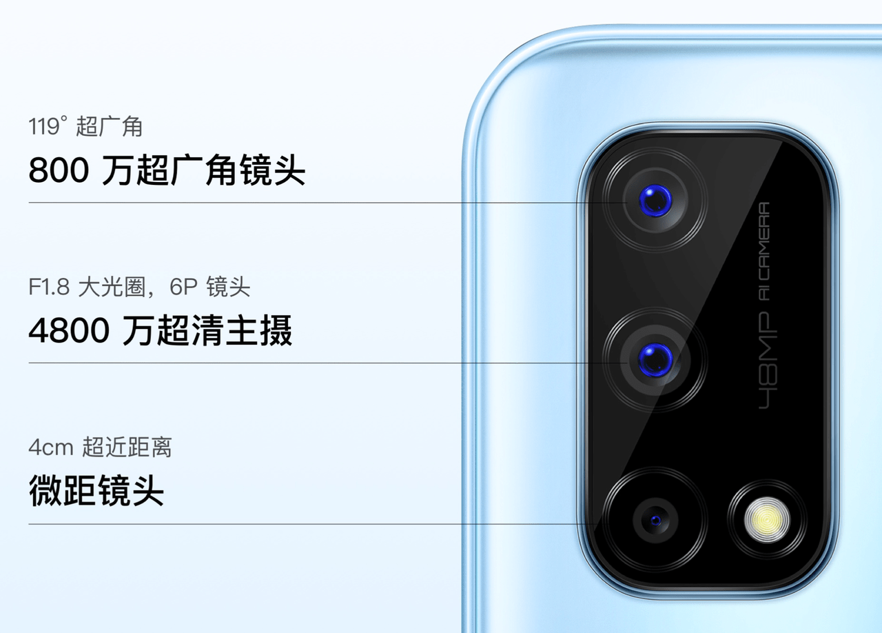 ▼Realme Q2 5Gのカメラはメインが4,800万画素と高く、サブカメラには800万画素の超広角、そして200万画素のマクロカメラで構成されたトリプルカメラを採用!↓