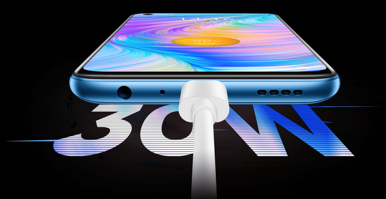 ▼Realme Q2 5Gのバッテリー容量は5,000mAhを搭載!従来よりも大容量なバッテリーを備えており、さらに30Wの急速充電も対応したことで、電池もちの良さ、充電速度の速さどちらも期待できる魅力スペックに仕上がってます。65分で充電完了という速さがステキ!↓