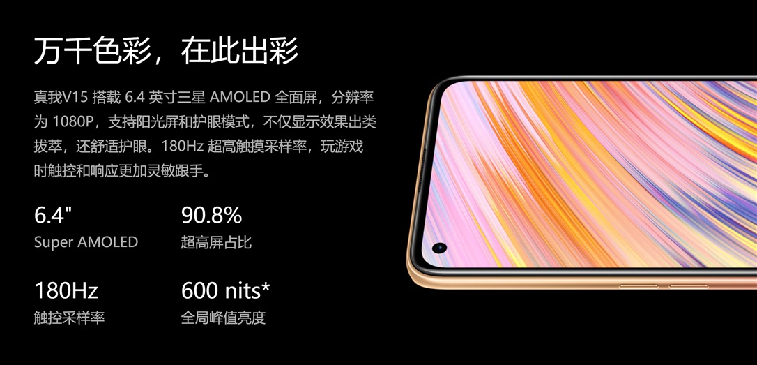 Realme V15 5Gのディスプレイ素材は高級テレビに用いられる有機ELを採用。液晶タイプのディスプレイより発色が豊かでとってもキレイな表示を楽しむことができるのも魅力です。