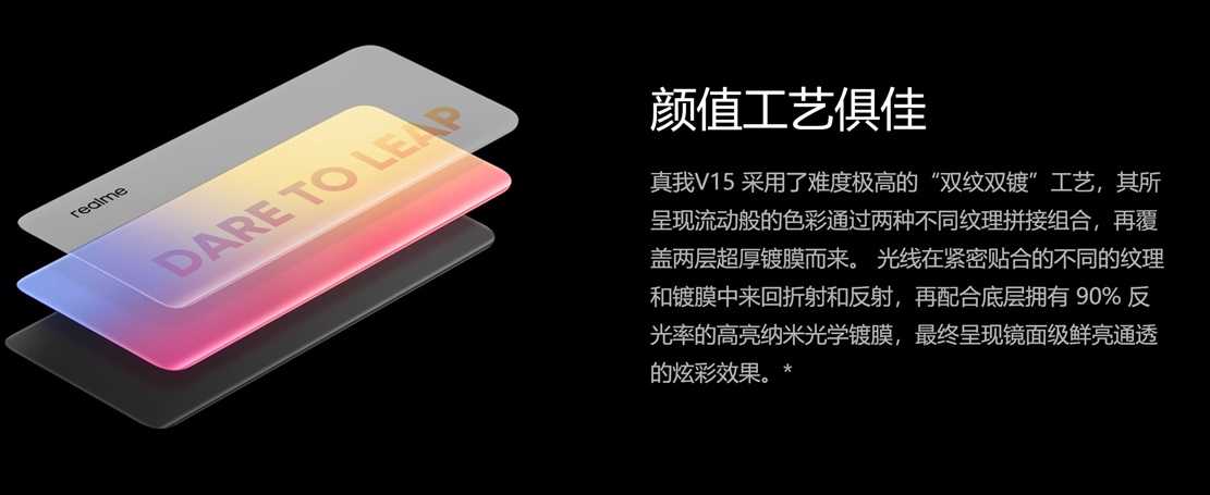 ▼Realme V15 5Gのカラーはシルバー系、ブルー系そしてニシキゴイカラーの3色展開!↓