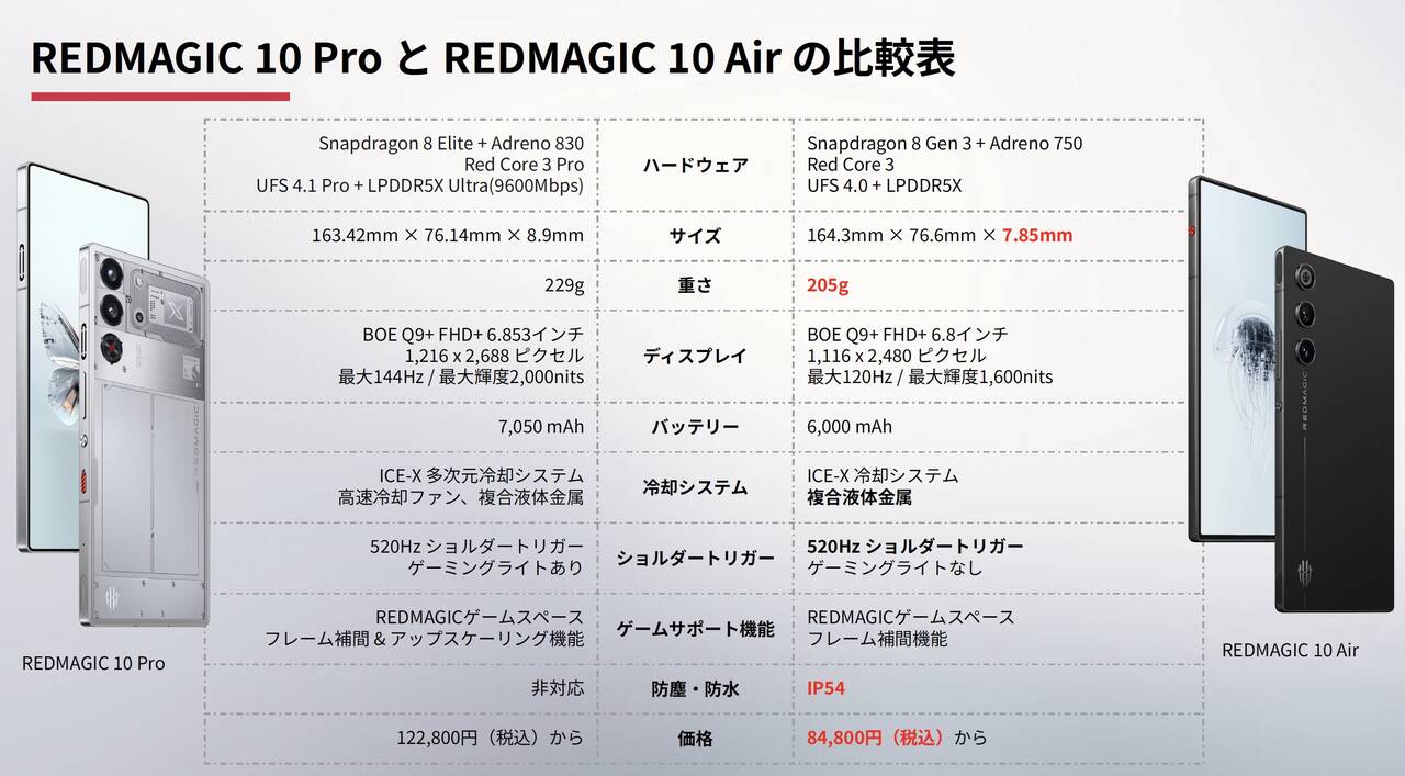 一通り触ったんですけど、REDMAGIC 10 Airで十分って人、多いんじゃないかな〜。ハイエンドSoCを備えながらゲーム機能満載で定価84,800円からという手を出しやすい価格も魅力的。