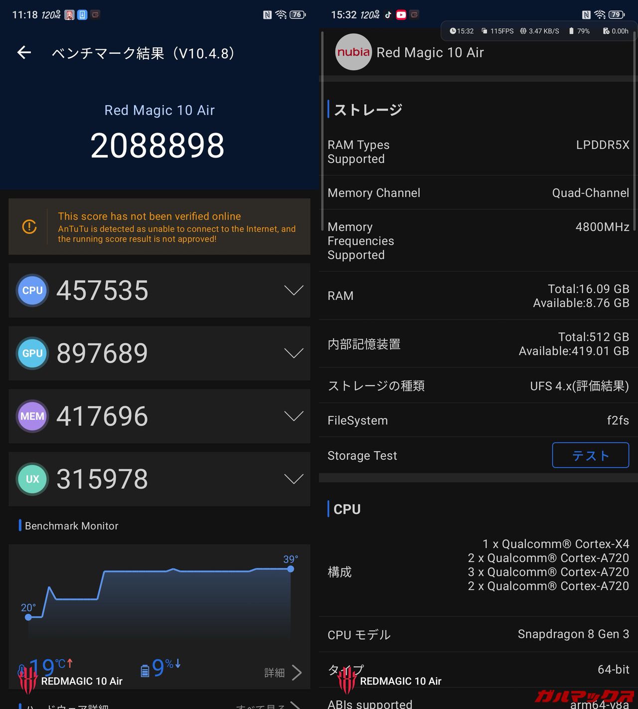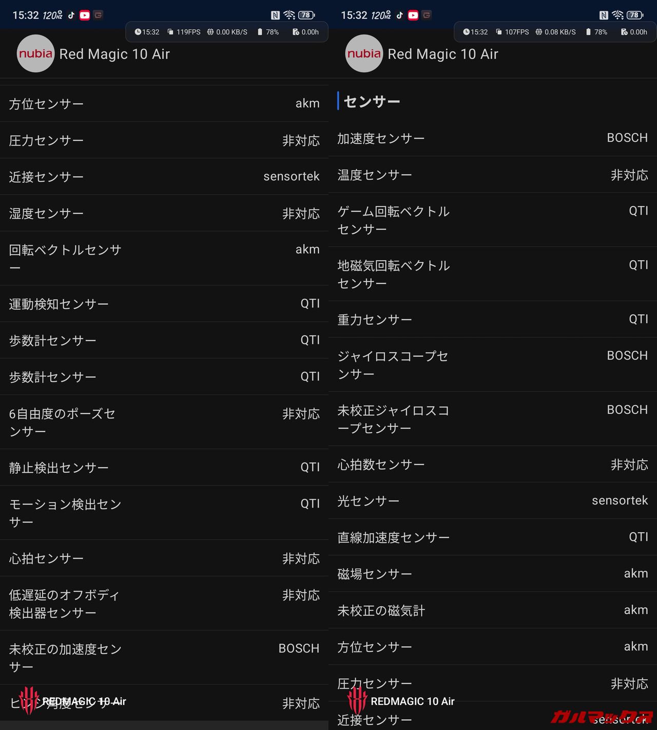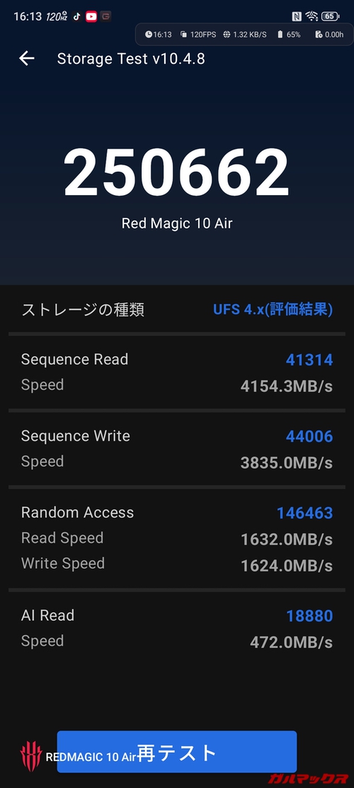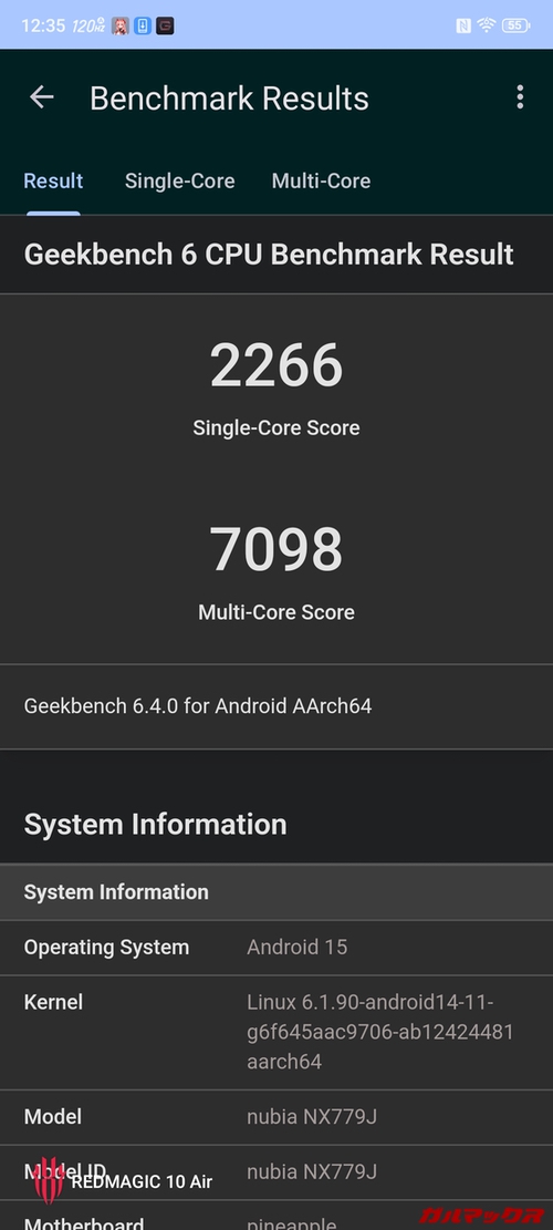 ちなみに高リフレッシュレートは上位のREDMAGIC 10 Proが最大144Hzに対し、REDMAGIC 10 Airは最大120Hzまでと控えめだけど、十分、十分。