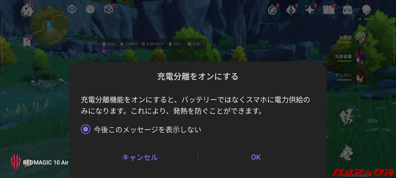 ▼ちなみにREDMAGICでの機能名は「充電分離」といいます。↓