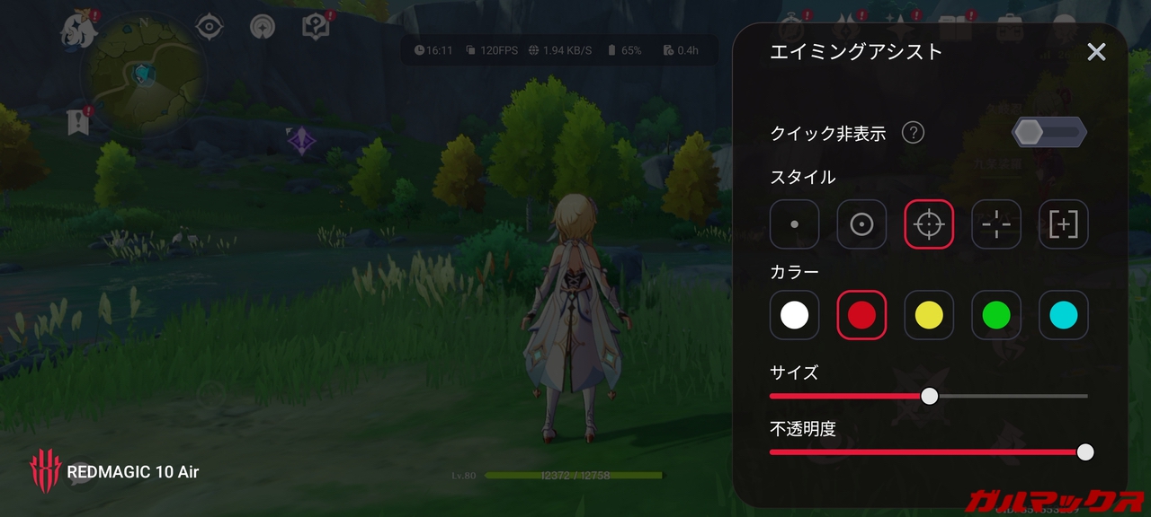 ▼あと結構グレーな機能としては画面の中央にレティクルを常に表示できる機能が備わってます。↓