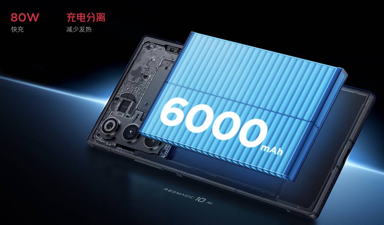 ▼バッテリー容量は超大容量の6,000mAh。充電は80Wの超急速タイプ。また充電分離(システム直給電)も対応しているようですね!長時間のゲームプレイでも安心。↓