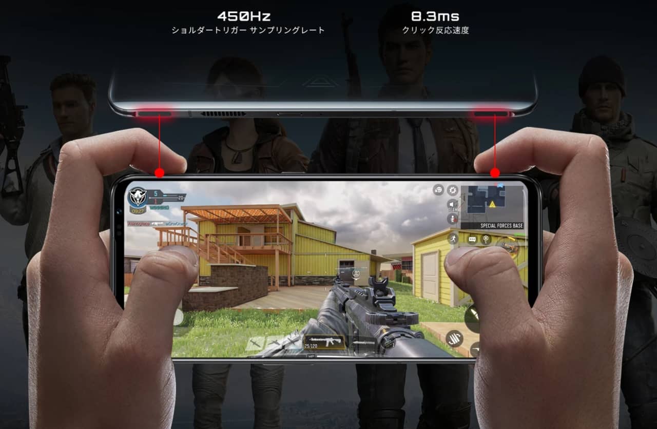本体右側面にはLR式のタッチトリガーが配置!このトリガーを押すと、設定しておいた部分にタッチする操作ができるので、例えばFPSゲームならグレネードとかエイム、射撃がやりやすくなるのも魅力!↓