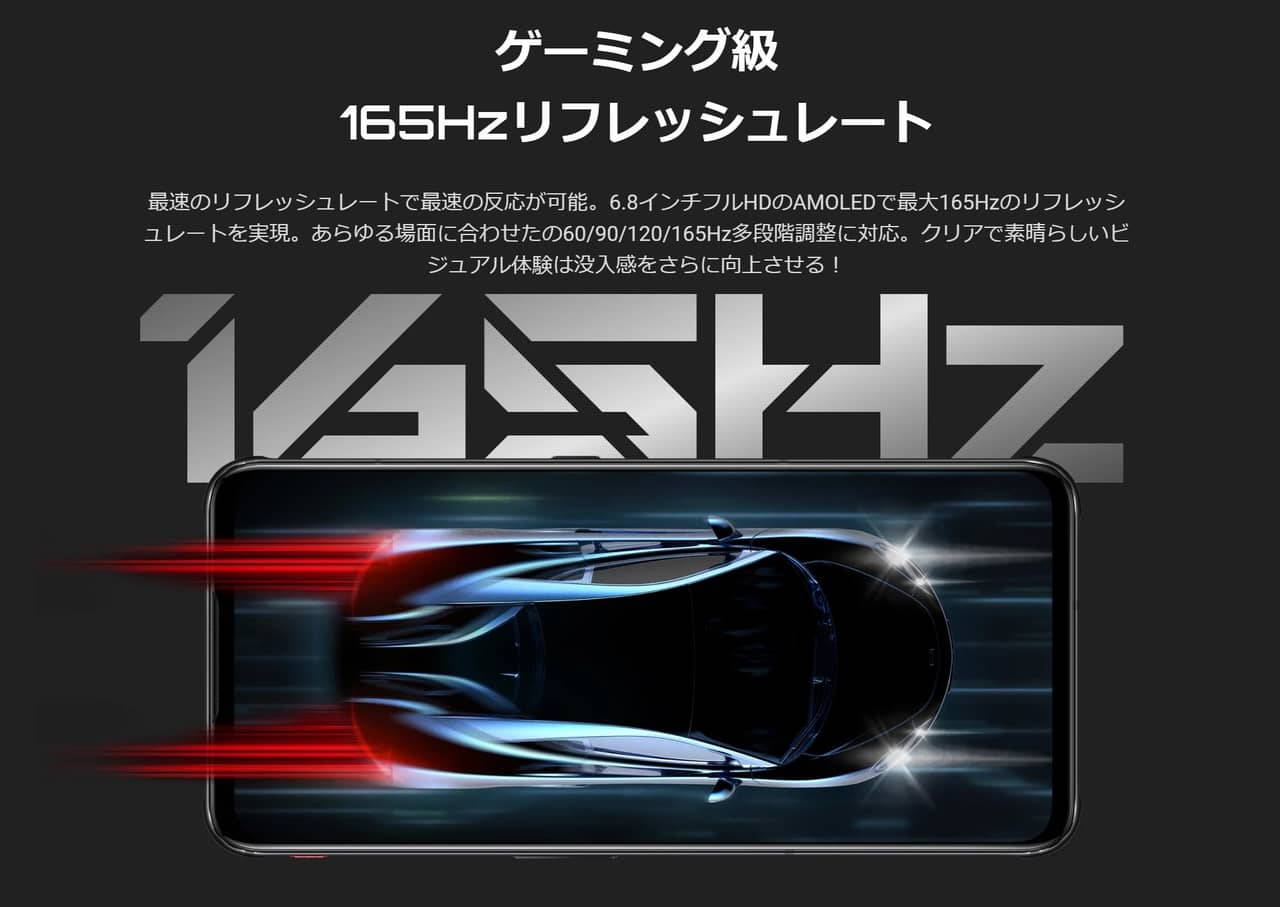 しかもリフレッシュレート(1秒間の画面更新速度)がスマホでは最高の165Hzというトンデモクラスの高さ!GalaxyとかXiaomiなどの高級なハイエンド(120Hz)ですらも凌駕する高さ、ゆえに普段使いでスクロールが恐ろしくなめらかに楽しめます。