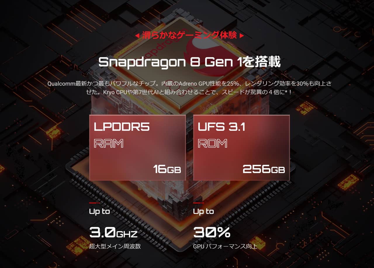 高いといえば高いんだけど、この手のガチガチなゲーミングモデルでSnapdragon 8 Gen 1搭載で10万前後ってのは結構アリなんじゃあないかと思うんす。