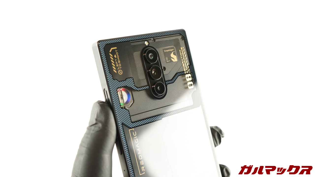これまでもRedMagicシリーズは背面が透明のモデルをリリースしてきたんですが、RedMagic 8 Proも健在。僕はRedMagic 8 Proで同社の透明モデルを初めて触ったんですが、これはカッコいい!