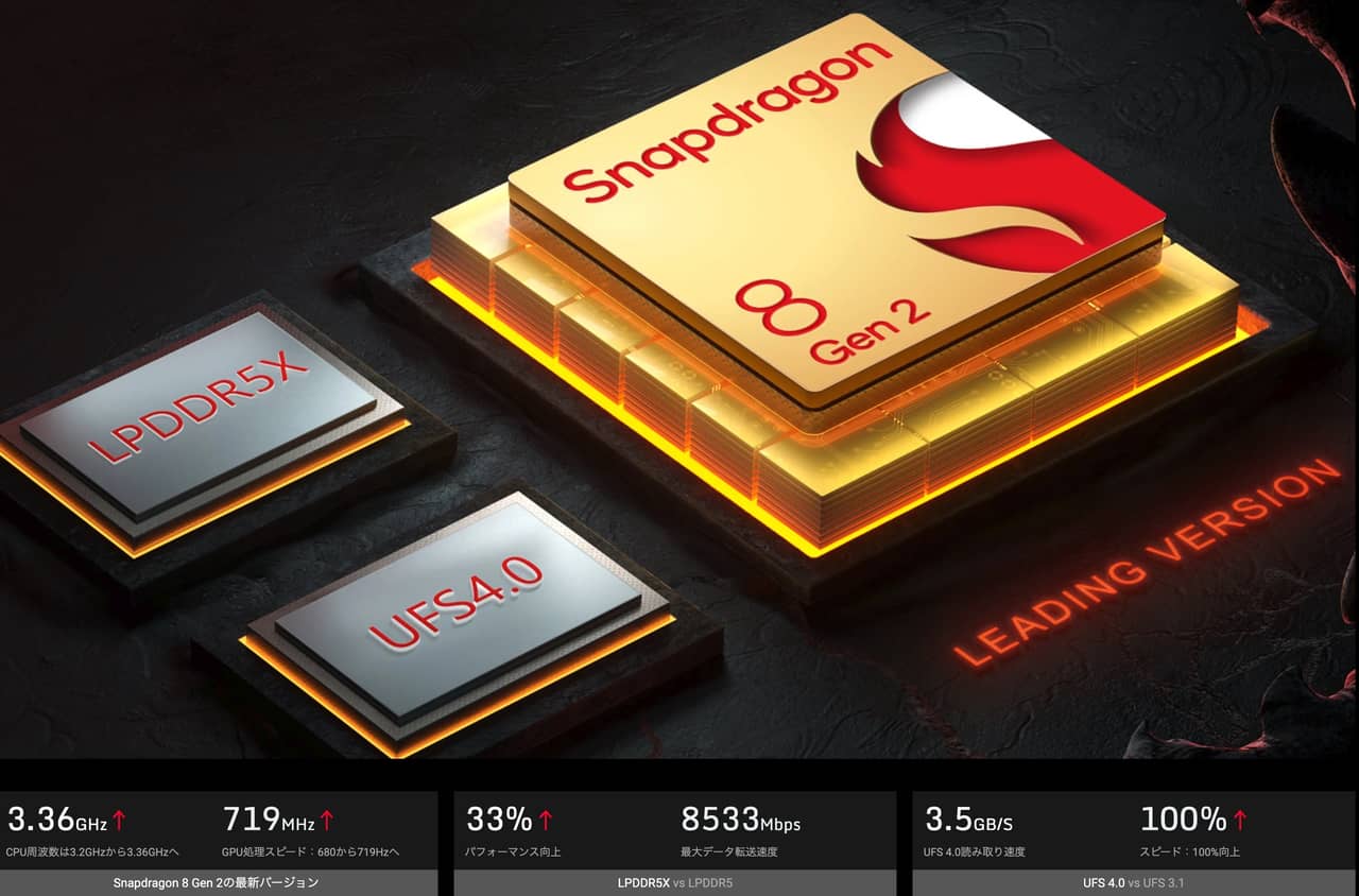 Snapdragon 8 Gen 2の高クロック版を搭載。しかも安い