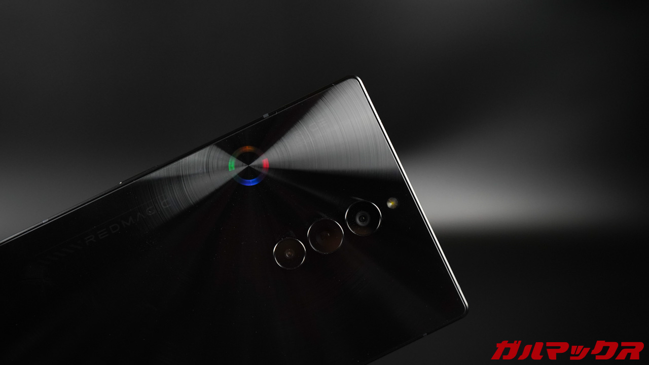 ▼ブラックの背面はこんな感じ。内蔵ファンやRedMagicのロゴはRGBライディング機能でカラフルに光らせることも出来ます。↓