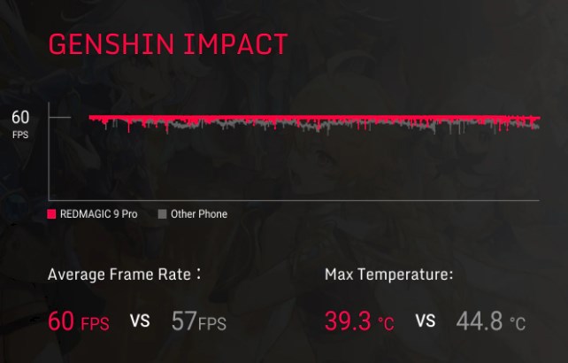 公式サイトを確認すると、原神は平均60FPSでのプレイが可能で熱も最大39.3°だったとのこと!長時間プレイも安定的に遊べそうですね!