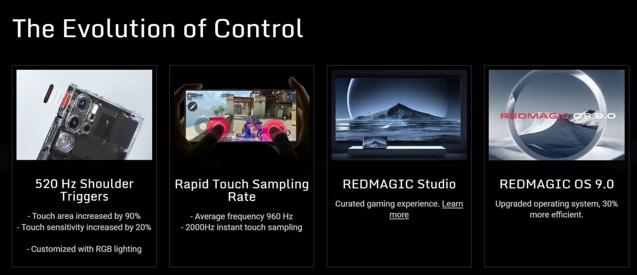 OSはカスタマイズされたRedMagic OS 9.0。ベースバージョンは最新鋭のAndroid 14!カスタマイズOSゆえ新機能、独自機能とその作り込みにも期待です。