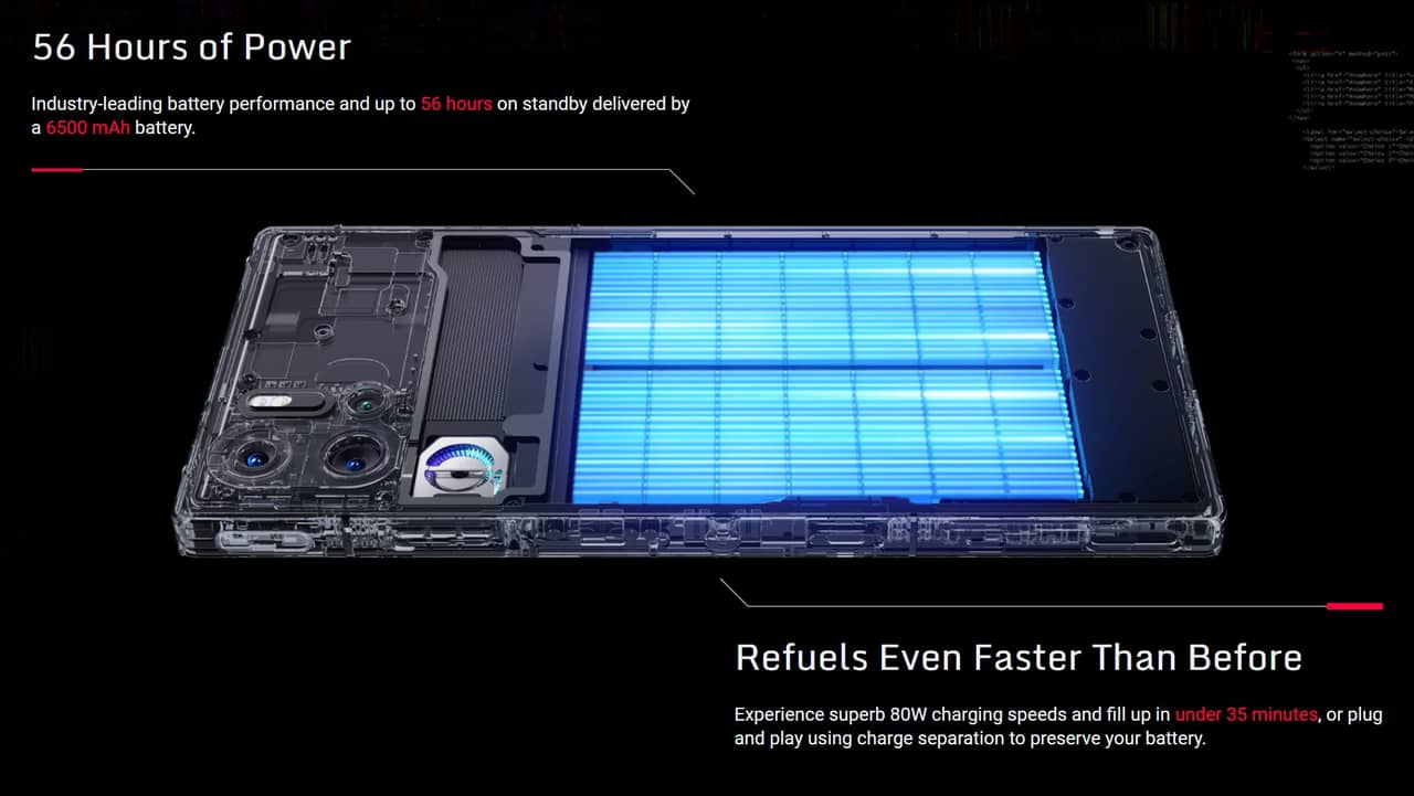 バッテリーの容量も常識をくつがえすものとなっています。RedMagic 9 Proは6,500mAhというデカデカバッテリーを搭載してるんですよ!