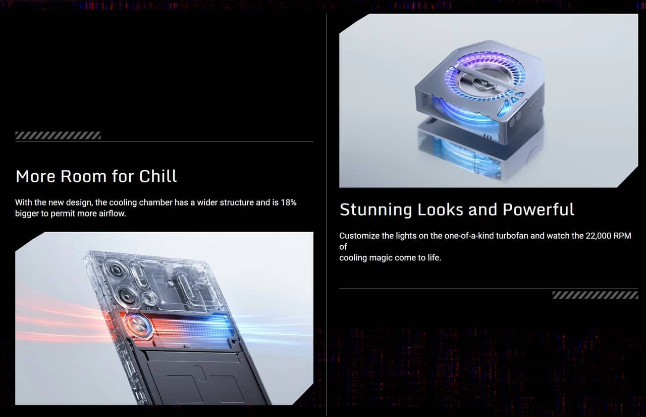 ▼またハイエンドSoCの暴れっぷりを制御するための冷却部分もバッチリで、他スマホではまず見られない物理冷却ファンを備えているのもRedMagicスマホならではでしょう。↓