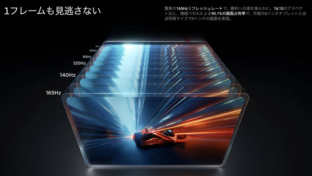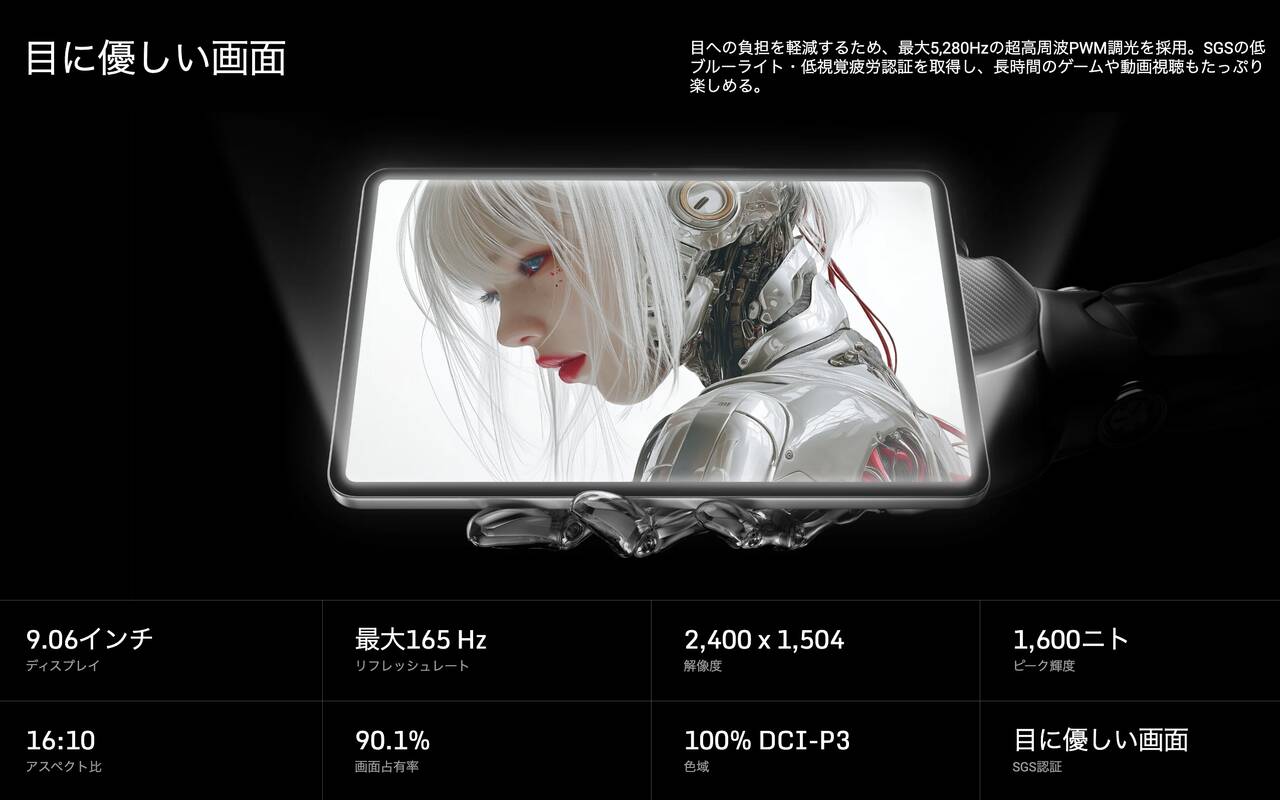 | ディスプレイ | 9.06インチ、有機EL、2,400×1,504、最大165Hz |