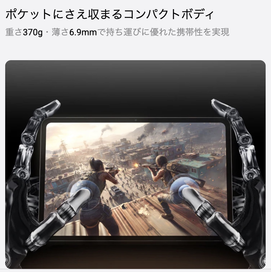 あとスマホよりも大画面でありながらiPad miniに近い絶妙なサイズ感なのもいいですねぇ。このくらいのサイズと重量なら持ち運びも楽ちんだし、いや〜、ゲーマーさんはマジで要チェックモデルですよ!
