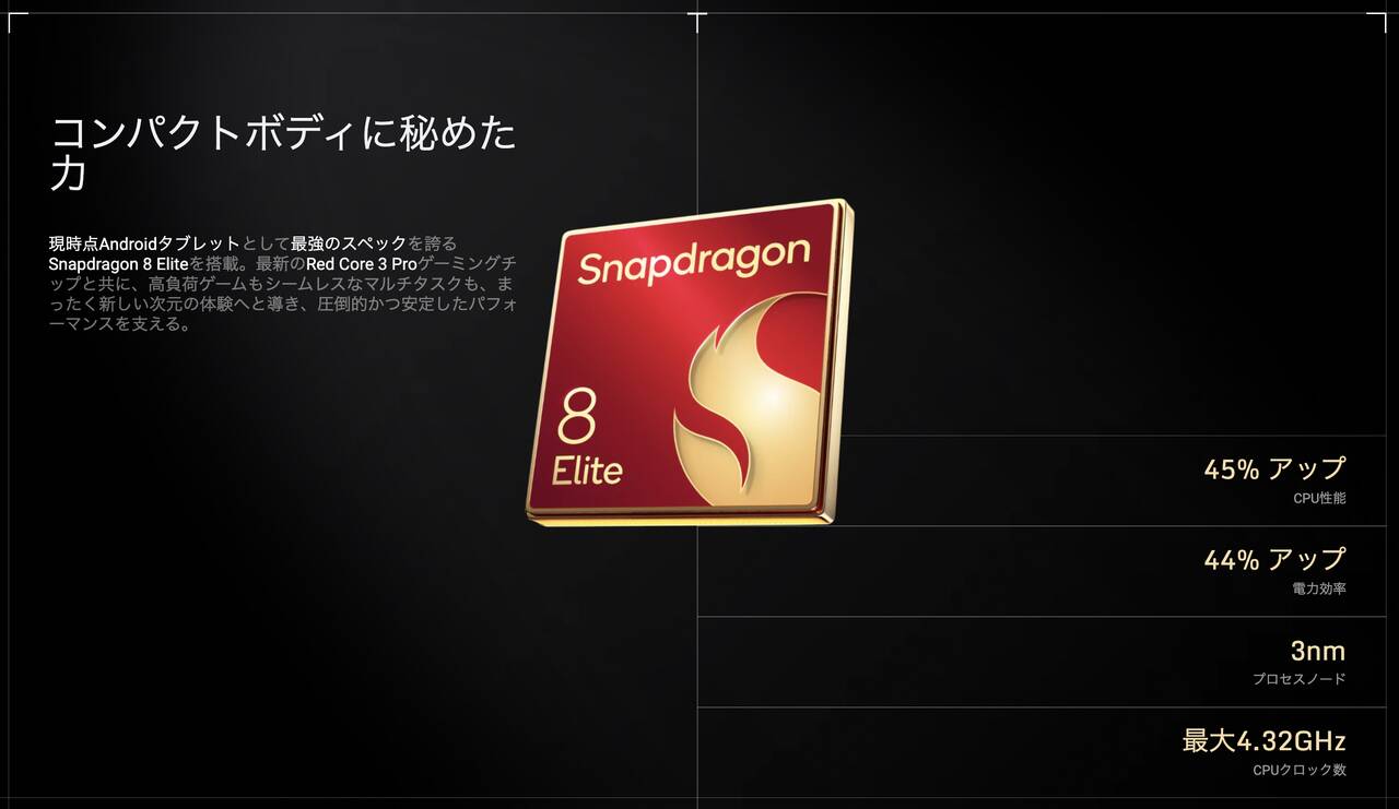 SoCは執筆時点で現行最高峰の性能を誇るSnapdragon 8 Eliteを搭載!