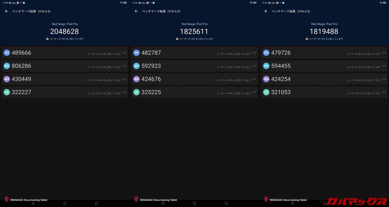 REDMAGIC NovaはAndroidタブレットとしてはトップクラスのゲーム性能だったので、スマホでゲームをたくさん遊んでいるゲーマーさんは長期的に快適なゲームライフを送れるはず!