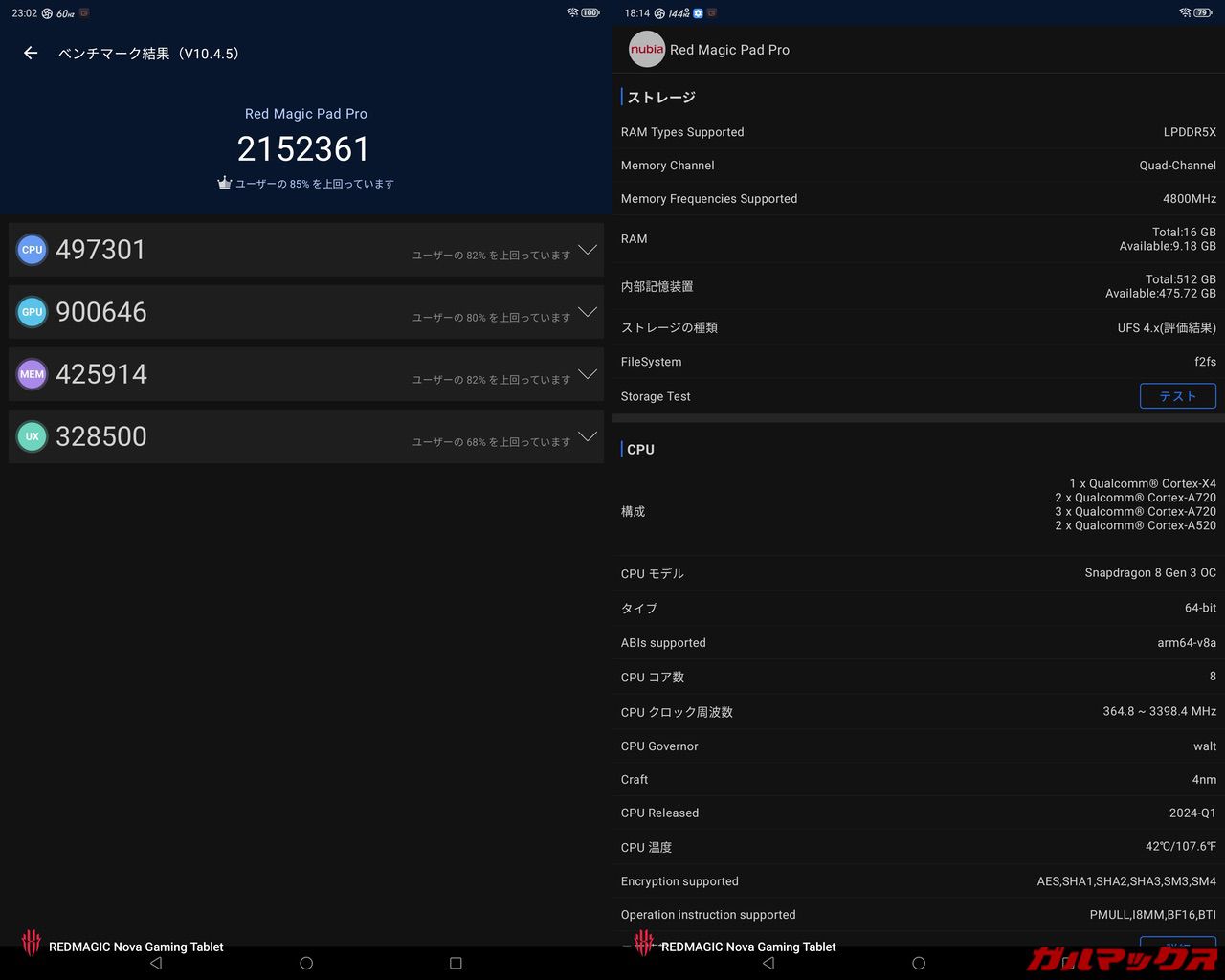 REDMAGIC Novaのスペック・ベンチマーク、検証結果