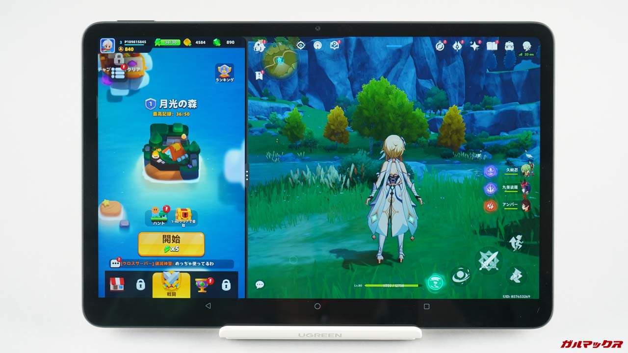▼これはアーチャー伝説2と原神を画面分割で表示した様子!普通のAndroidタブレットでも出来るけど、高解像度パネルだから画面分割しても映像がめっちゃ綺麗なんすよ。↓
