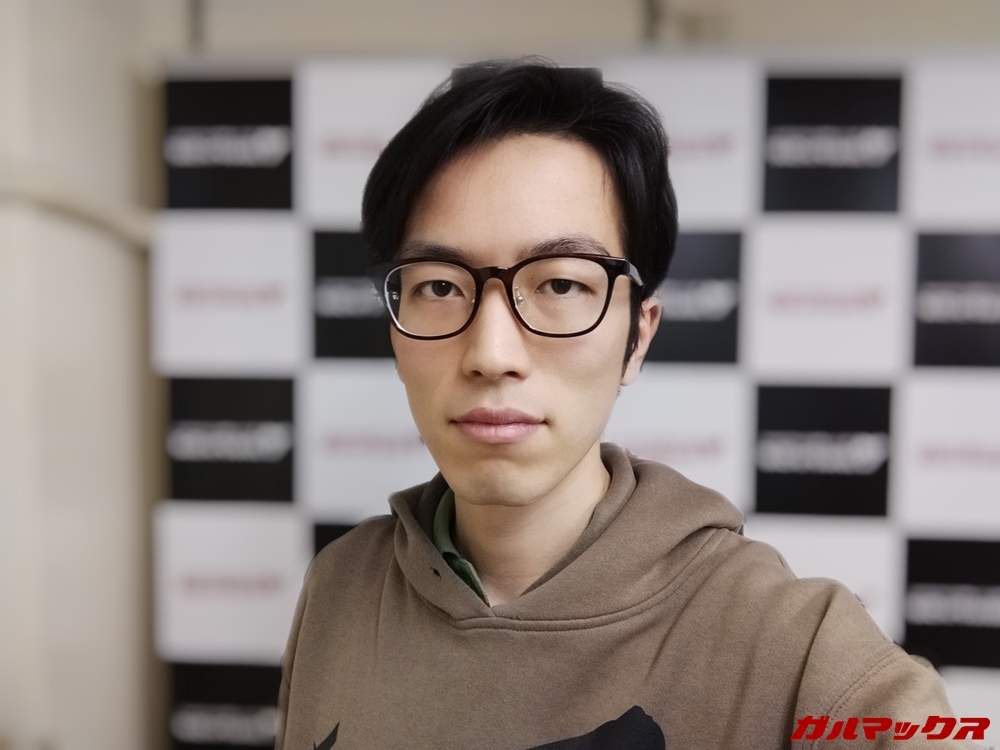 ▼端末の自撮り。ビューティーモードはもちろん、格安スマホでは珍しくポートレートに対応しているのがえらいですね(`・ω・´)!背景ボケの強度を最大にして、ビューティーモードはデフォルトで撮影しています。うんイケる。SNS用途でも良さそう。↓