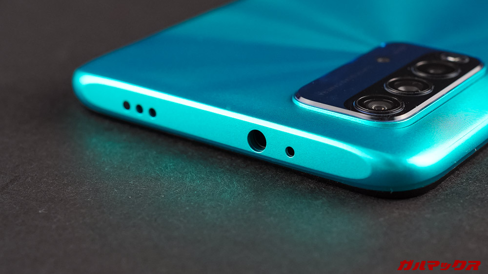▼上下も同様に気に入っています。もしも左右のヤマがそのまま上下にもあったら退屈なデザインだなって思ってたんですがそんなことありません。Redmi 9Tの上下は水平にカットされたフラットな形。手が込んでます。↓