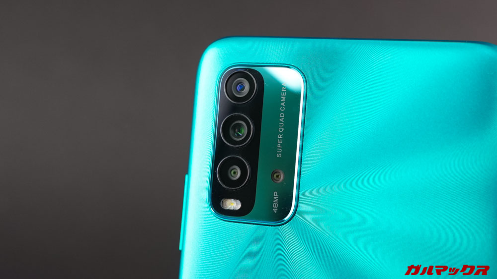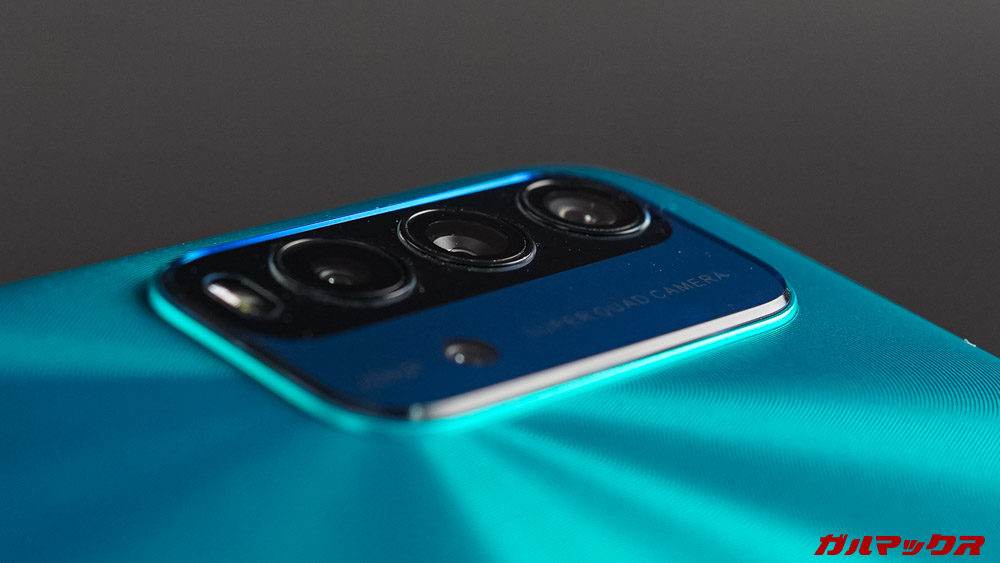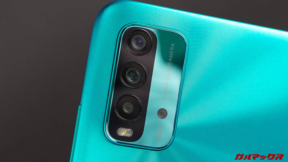 ▼カメラデザインも独特。幅広形状はよくある形なんですが、Redmi 9Tはよりスタイリッシュな見た目でカッコいい!反射が輝いて目を引く、個性的なデザインがたまらねぇ。ただし出っ張りが3つもある上に、メチャクチャ汚れが付きやすいのは気になった(´×ω×`)。↓