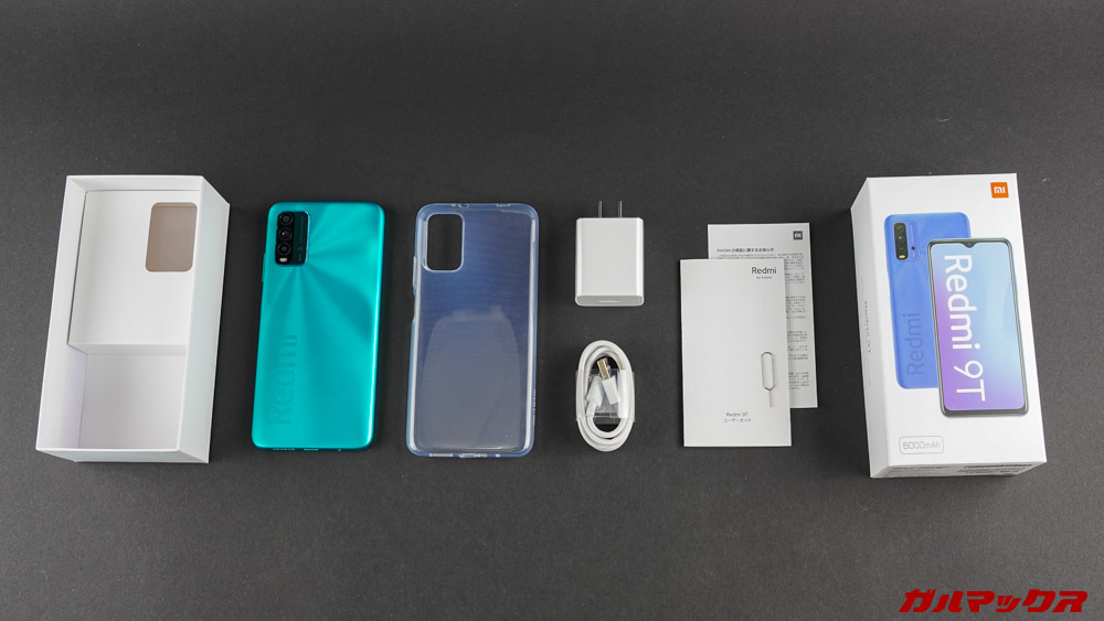 ▼またRedmi 9Tをある程度の衝撃やキズから守るクリアケースが付属しているのも高評価です。クリアカラーなので、本体の独特デザインを遮ることもないのも良い。端子のキャップもついてます。↓
