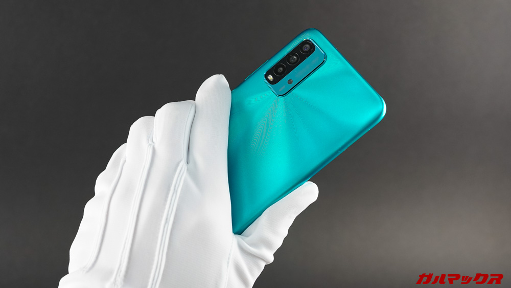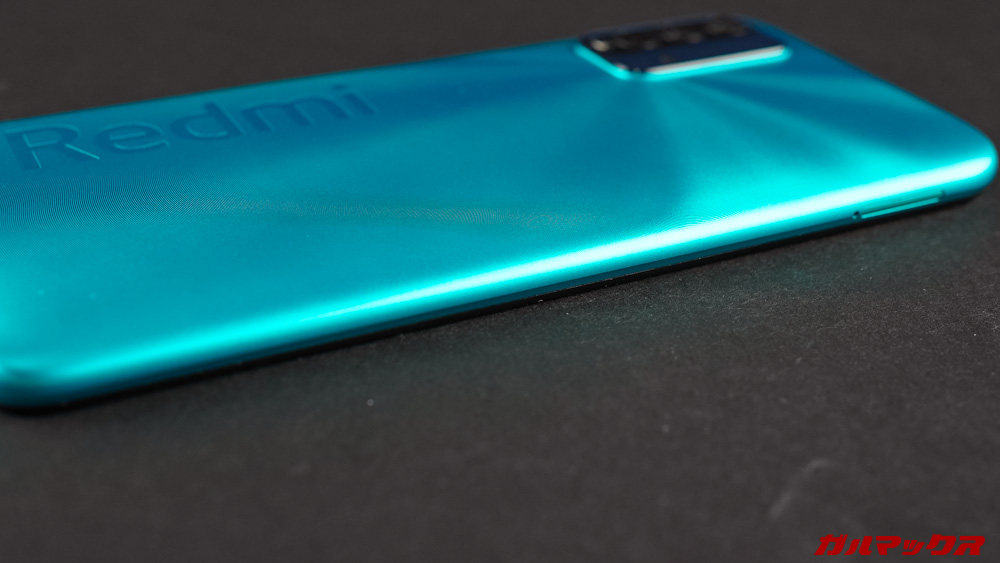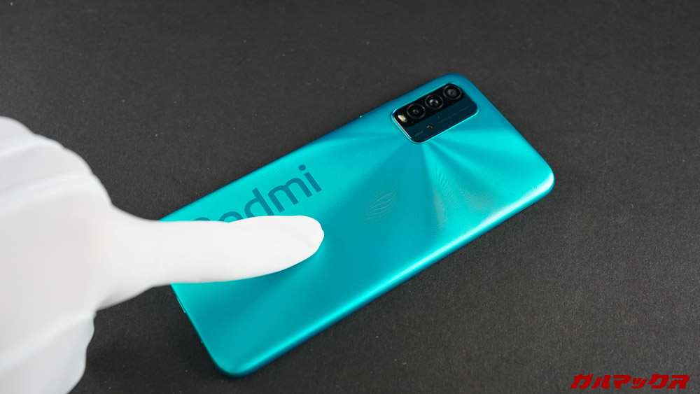 ▼美しい見た目のスマホを持つとき気にしちゃうであろう指紋、皮脂のヨゴレなんですが、Redmi 9Tはそれがまったくといってもいいほど気にならないんす。指紋を気にしてケースを付けていた筆者からすればケースなしでも使っていけるぜ!って思えるレベル。↓