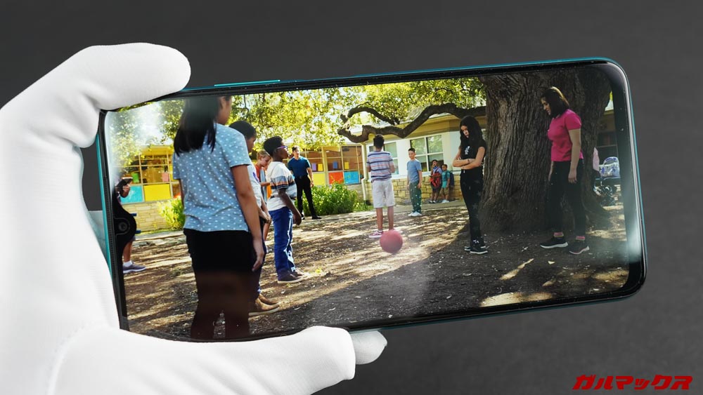 ▼ひとつ言えるのが、1万円台スマホの分際で解像度が「2,400×1,080のFHD+」というのがすごくリッパって事。しかもDRMコンテンツもキレイに見られるWidevine L1を備えているのも驚き。Netflixを存分に楽しめるエンタメ向きの出来栄えです。強すぎる!↓