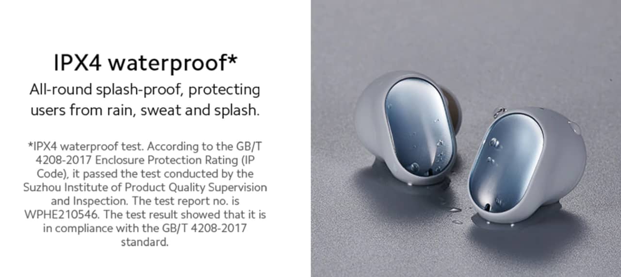 ▼防水規格はIPX4に対応!外で雨に濡れても耐えられる作りになっています!音楽が好きすぎてシャワーしながらイヤホンする筆者のトチ狂った使い方でも耐えられるか楽しみだ(※絶対に真似しないでください)。↓