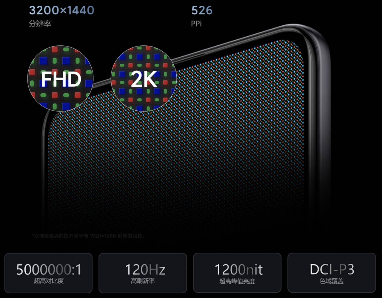 ▼ディスプレイですが、解像度は3,200×1,440の2K解像度で高精細!120Hzでなめらかな表示が楽しめるほか、ピーク時輝度は1,200ニットとハイエンドモデル顔負けの仕様が凄い(`・ω・´)。↓