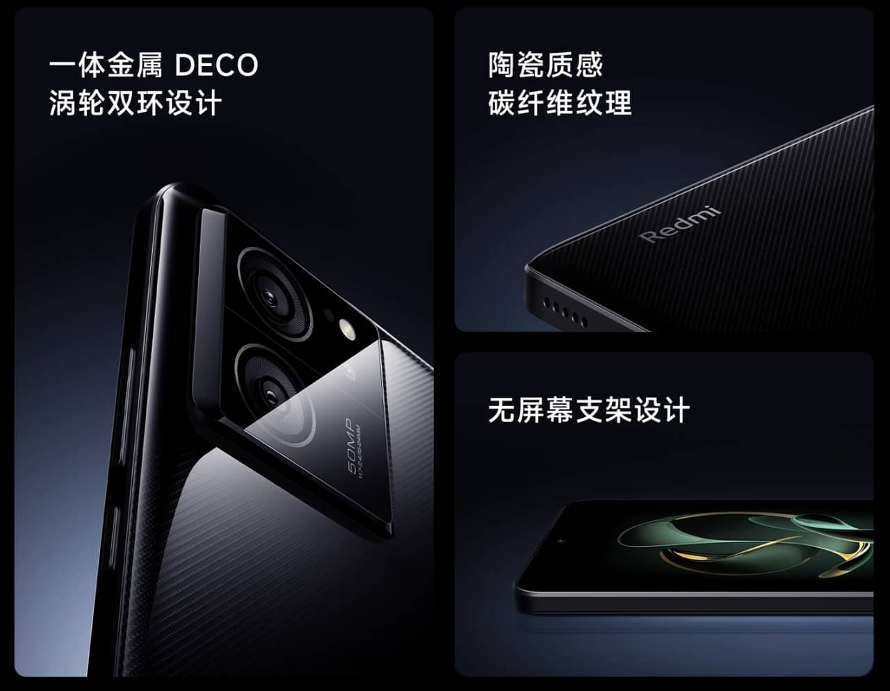 ▼Redmi K60 Ultraの外観は結構シャープな印象を受ける造形です。カメラユニットの盛り上がりがナナメになっていたり側面がフラットになってたり、ブラックカラーはナナメのストライプ(カーボン?)があしらわれててカッコいい。↓