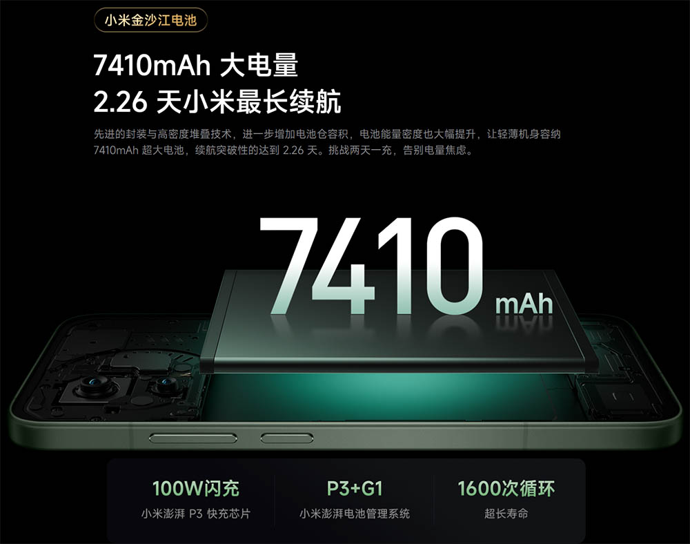 ▼バッテリーは7410mAhと大容量。100W(HyperCharge)の充電に対応しています。また、バッテリーではなく本体に直接給電することでバッテリーの劣化を抑えるバイパス充電にも対応!↓