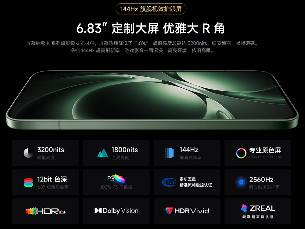 ▼ディスプレイサイズは6.83インチ、解像度は2772×1280でリフレッシュレートは最大144Hzに対応。タッチサンプリングレートは480Hz、瞬間タッチサンプリングレートは2560Hzに達します。↓